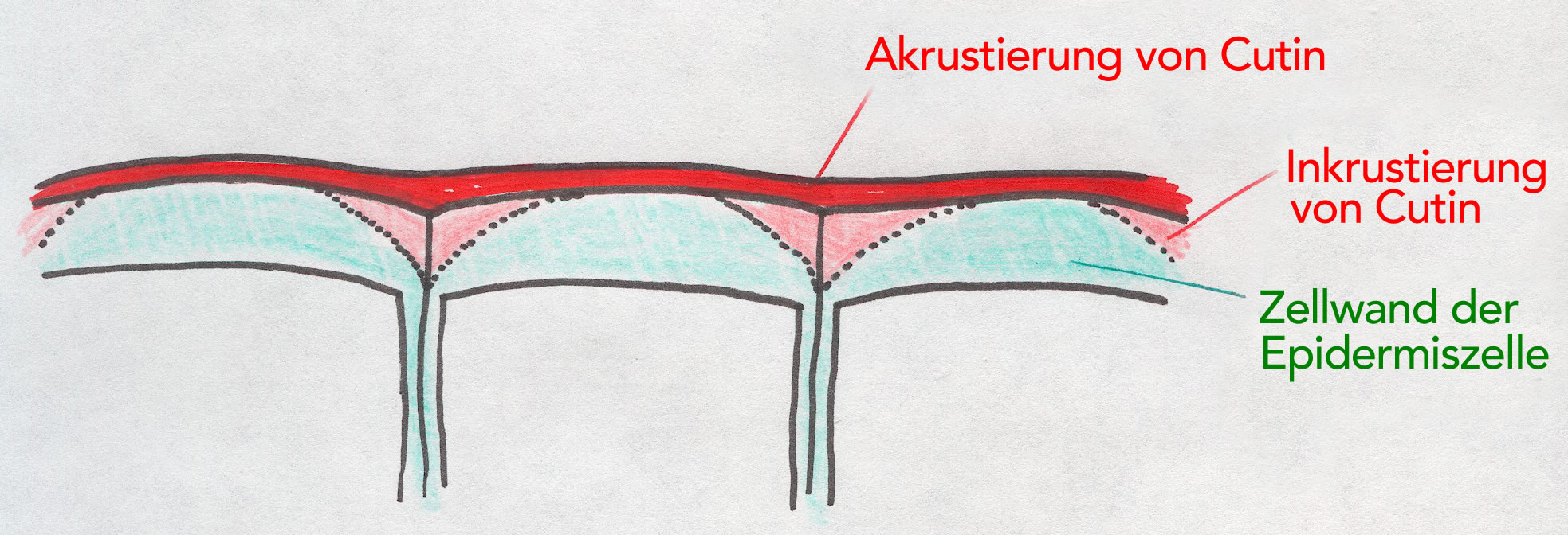 Akrustierung und Inkrustierung von Cutin auf / in die Epidermis einer Pflanze