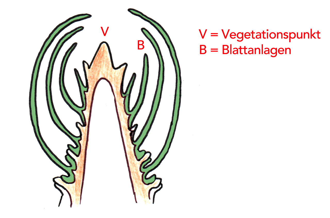 Knospe bzw. Vegetationskegel einer zweikeimblättrigen Pflanze