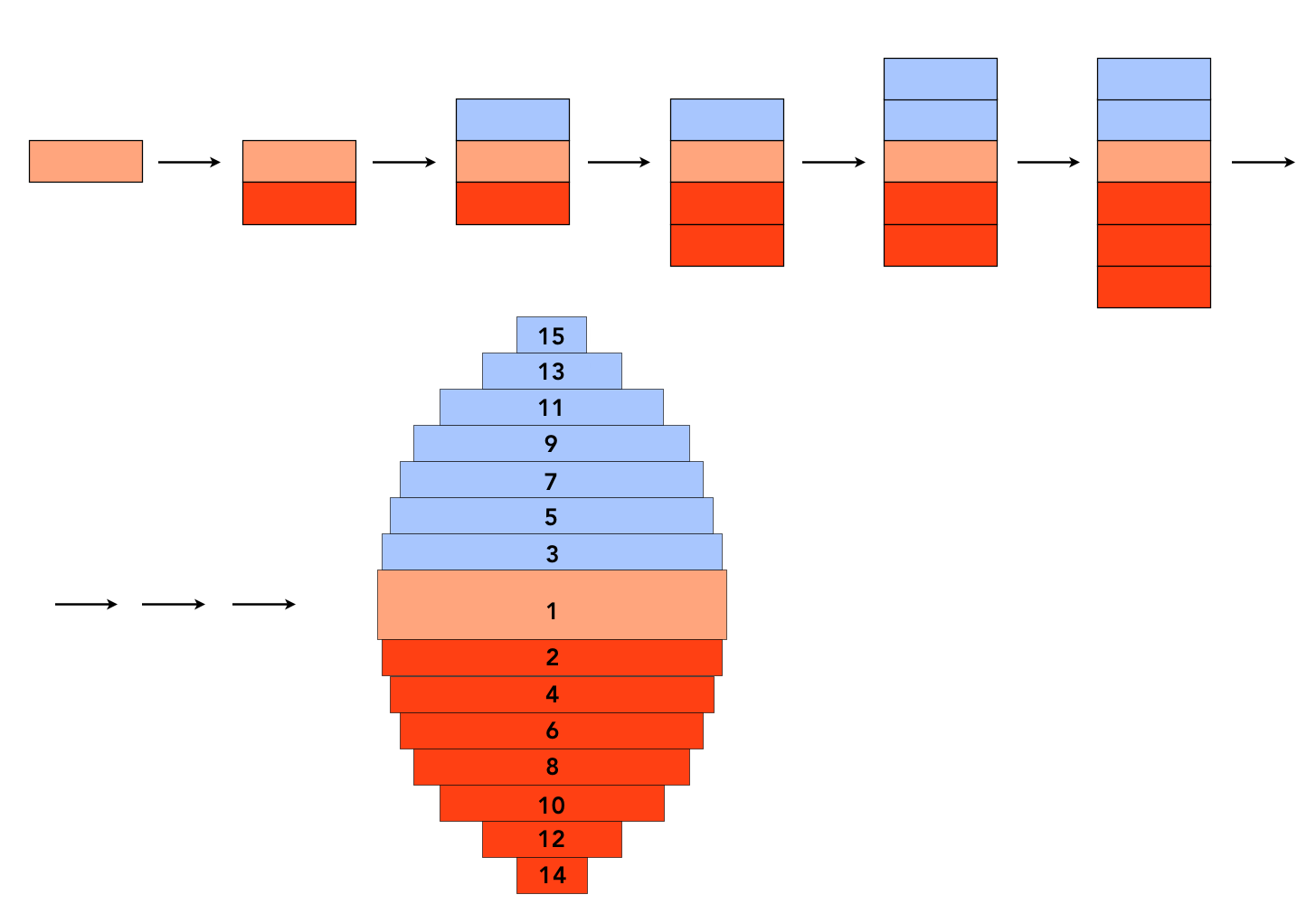 Phloem- und Xylemzellen entstehen aus Kambiumzellen nach einem ganz bestimmten Schema: