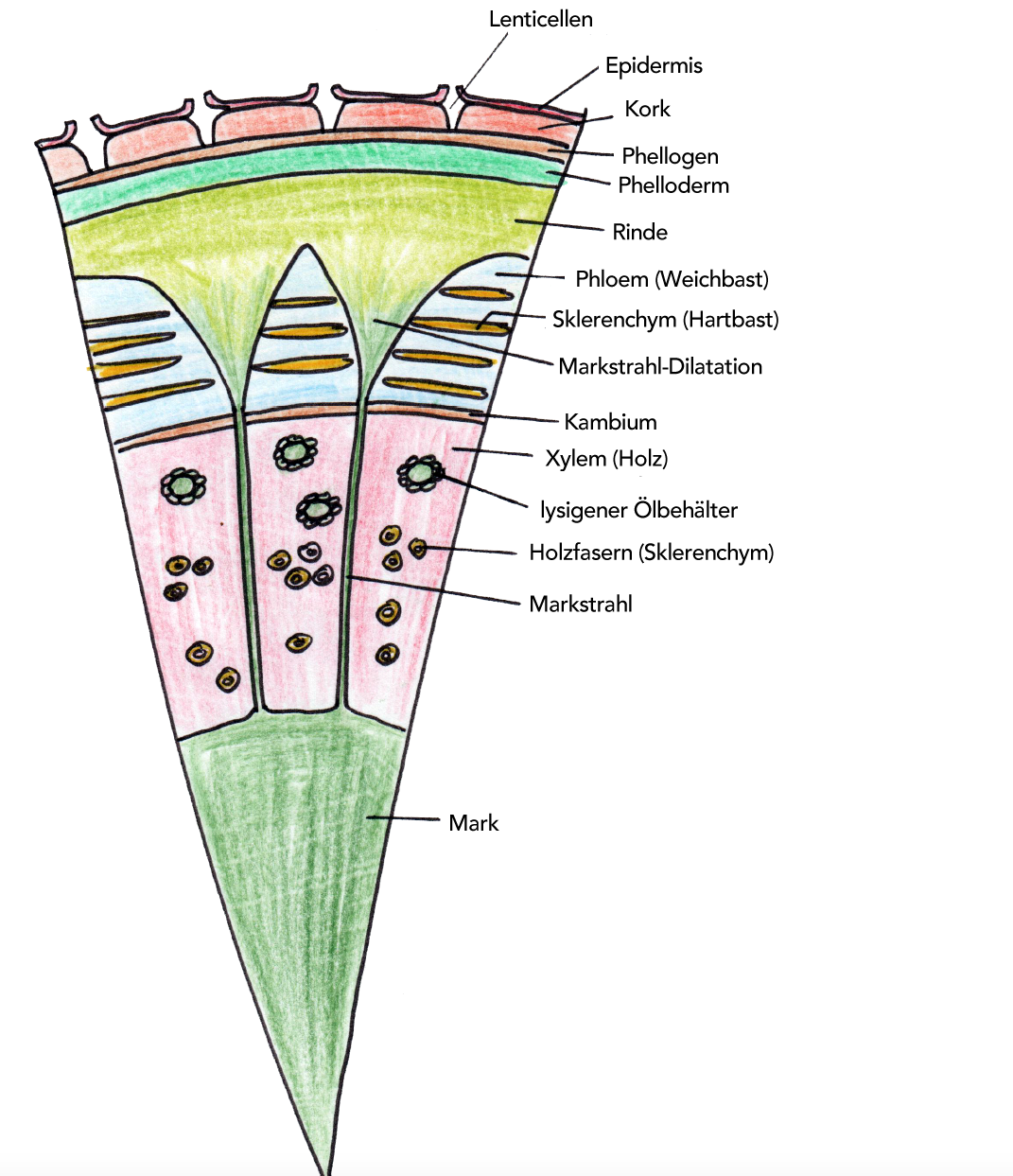 Als weitere, zusätzliche Elemente wären die schizogenen Harzkanäle zu erwähnen.
