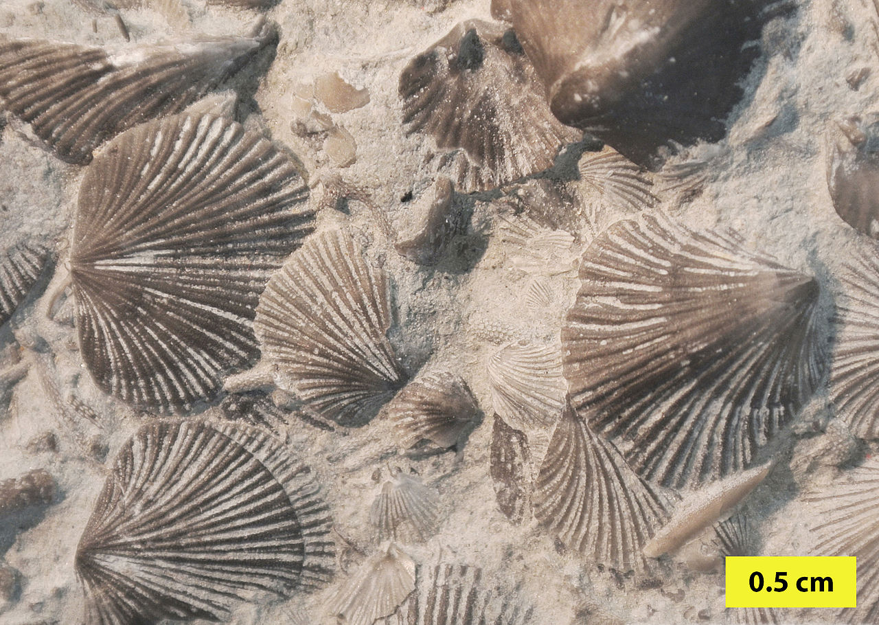 Typische Leitfossilien des Kambriums sind die Trilobiten, die Archaeocyathiden und die Brachiopoden (das Aufmacherbild dieser Seite zeigt Fossilien von Brachiopoden).