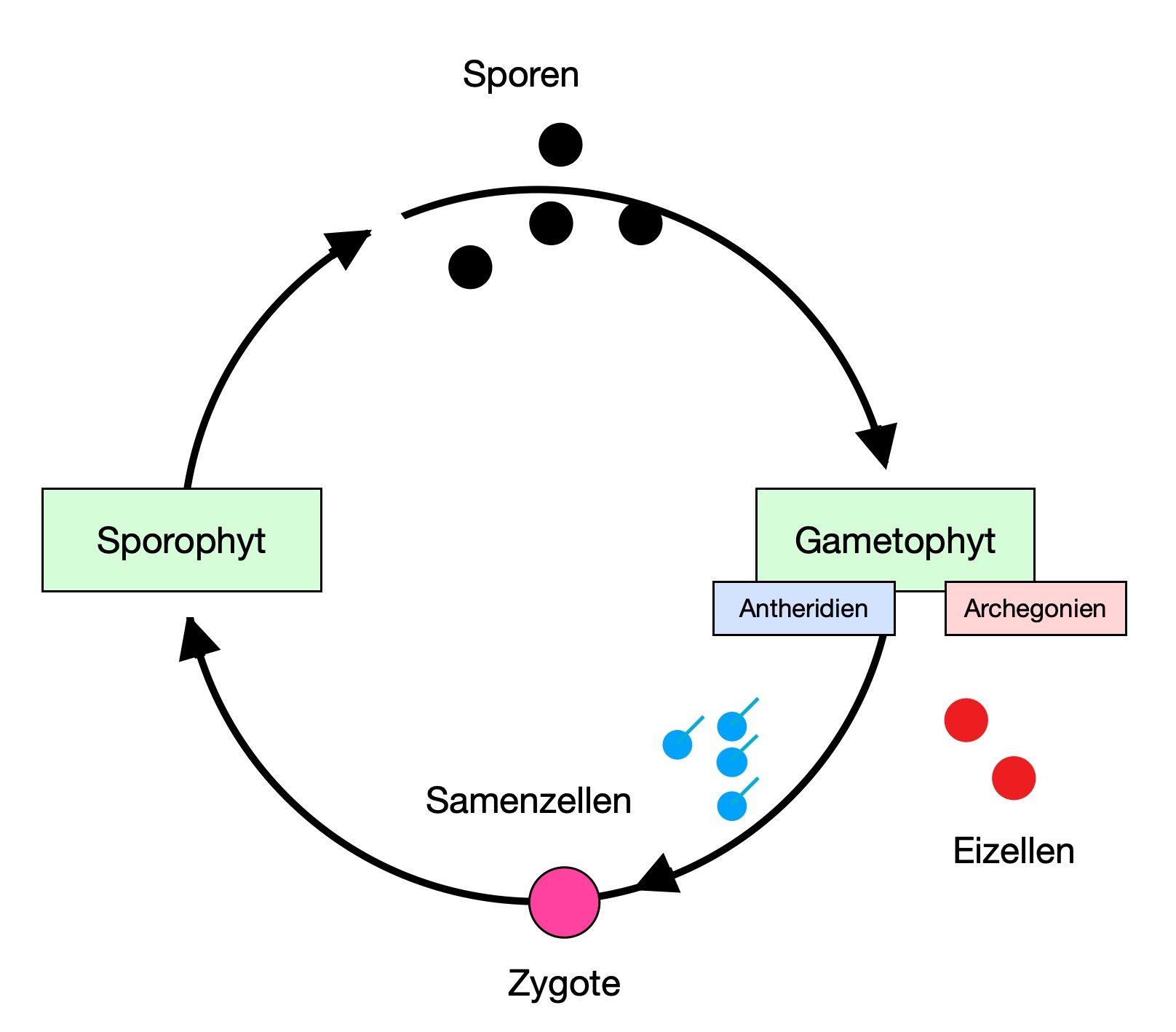 Aus der Zygote, der befruchteten Eizelle, entstand dann wieder ein neuer Sporophyt, also eine Pflanze, die in der Lage war, Sporen zu bilden.