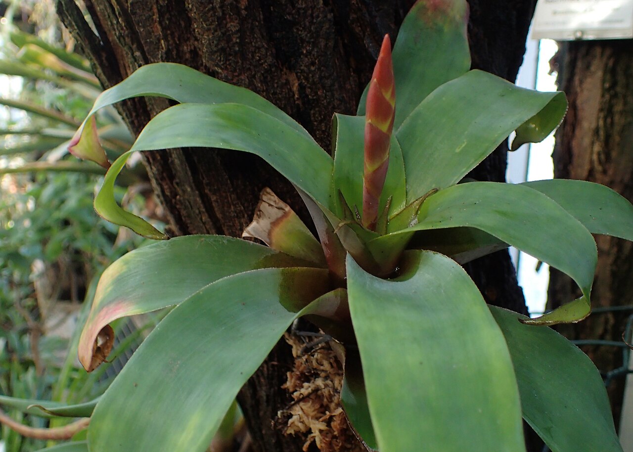 Die breiten Blätter einer Bromelienart können Wasser speichern