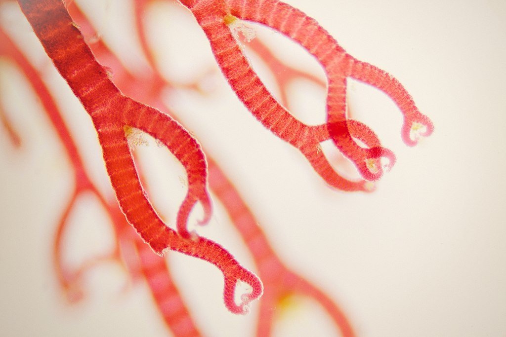 Mikroskopische Aufnahme von Ceramium sp., einer mehrzelligen Rotalge