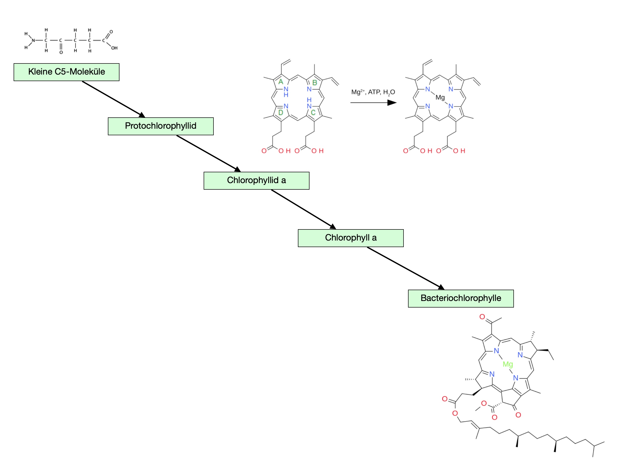 Bei der Umwandlung von Chlorophyll a in Bacteriochlorophyll werden nur noch minimale Änderungen vorgenommen.
