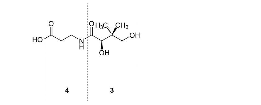 Die Abschnitte 3 und 4 von Coenzym A werden zusammen auch als Pantothensäure bezeichnet, die in der Ernährungslehre als Vitamin B5 bezeichnet wird.