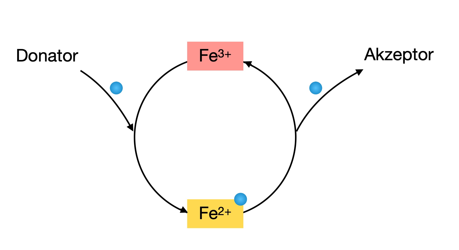Ein Eisen-Ion kann als Fe2+ vorliegen oder als Fe3+. In den Fe-S-Clustern wechseln die Eisen-Atome zwischen diesen beiden Zuständen: