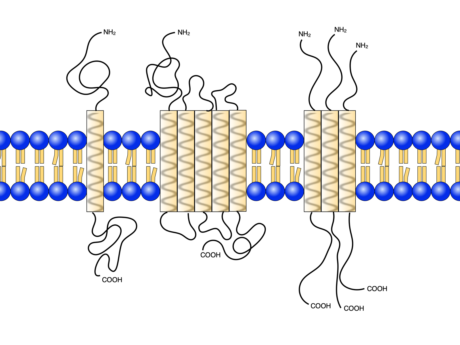 Die verschiedenen Membranproteine liegen als periphere Proteine auf der Lipid-Doppelschicht, befinden sich als eingelagerte Proteine in einer der beiden Lipid-Schichten, oder ziehen als Transmembranproteine durch die komplette Doppelschicht.