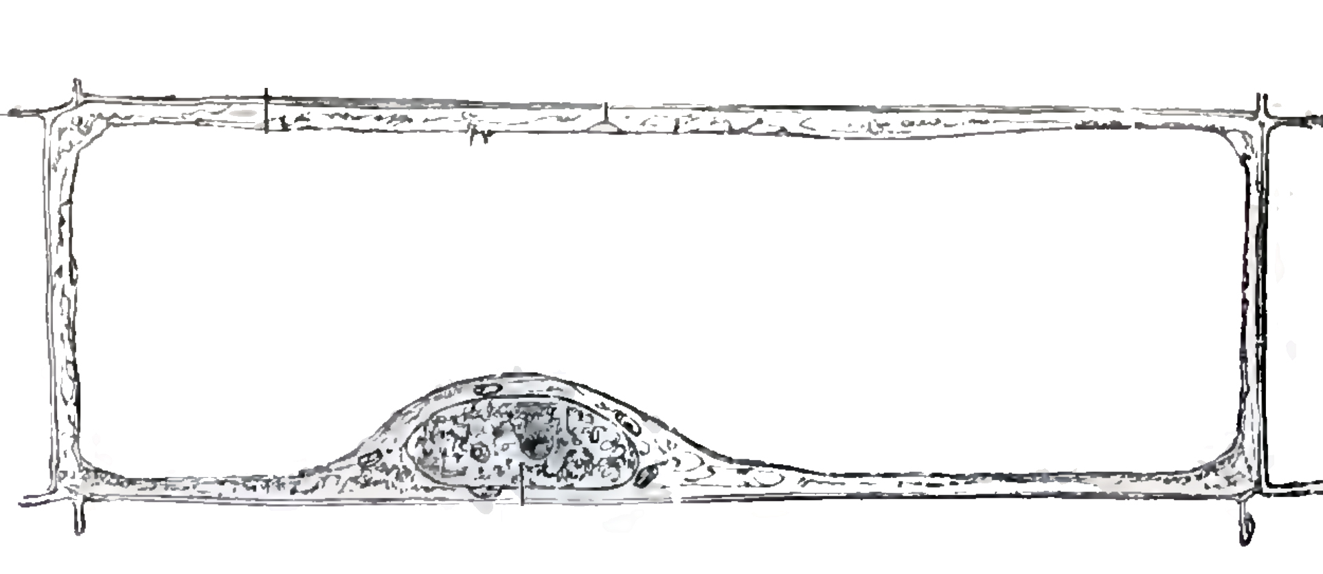 Die Vakuole ist in ausgewachsenen Zellen oft so groß, dass sie mehr als 90 % des Zellvolumens einnimmt und das Cytoplasma mit seinen Organellen an den Rand der Zelle verdrängt, wie man auf dem folgenden Bild aus dem Strasburger von 1923 sehr gut sehen kann: