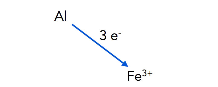Aluminium-Atome geben drei Elektronen an Eisen-Kationen ab