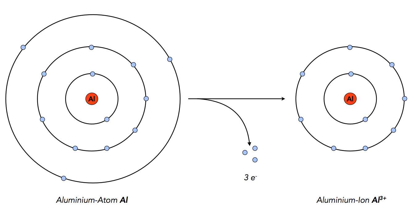 Aluminium-Atome geben drei Elektronen ab, um in den Edelgaszustand zu gelangen