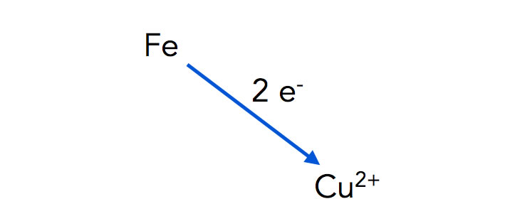 Fe (s) + Cu2+(aq) → Fe2+(aq) + Cu(s)