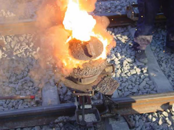 Thermitreaktion zum Schweißen von Eisenbahnschienen