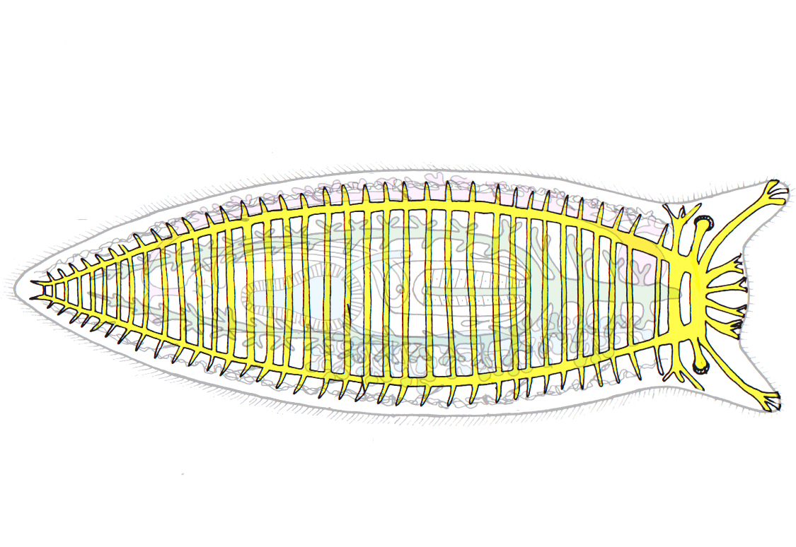 Der Körper der Plattwürmer ist unsegmentiert, im Gegensatz beispielsweise zu den Körpern der Ringelwümer, der aus zahlreichen Segmenten besteht.