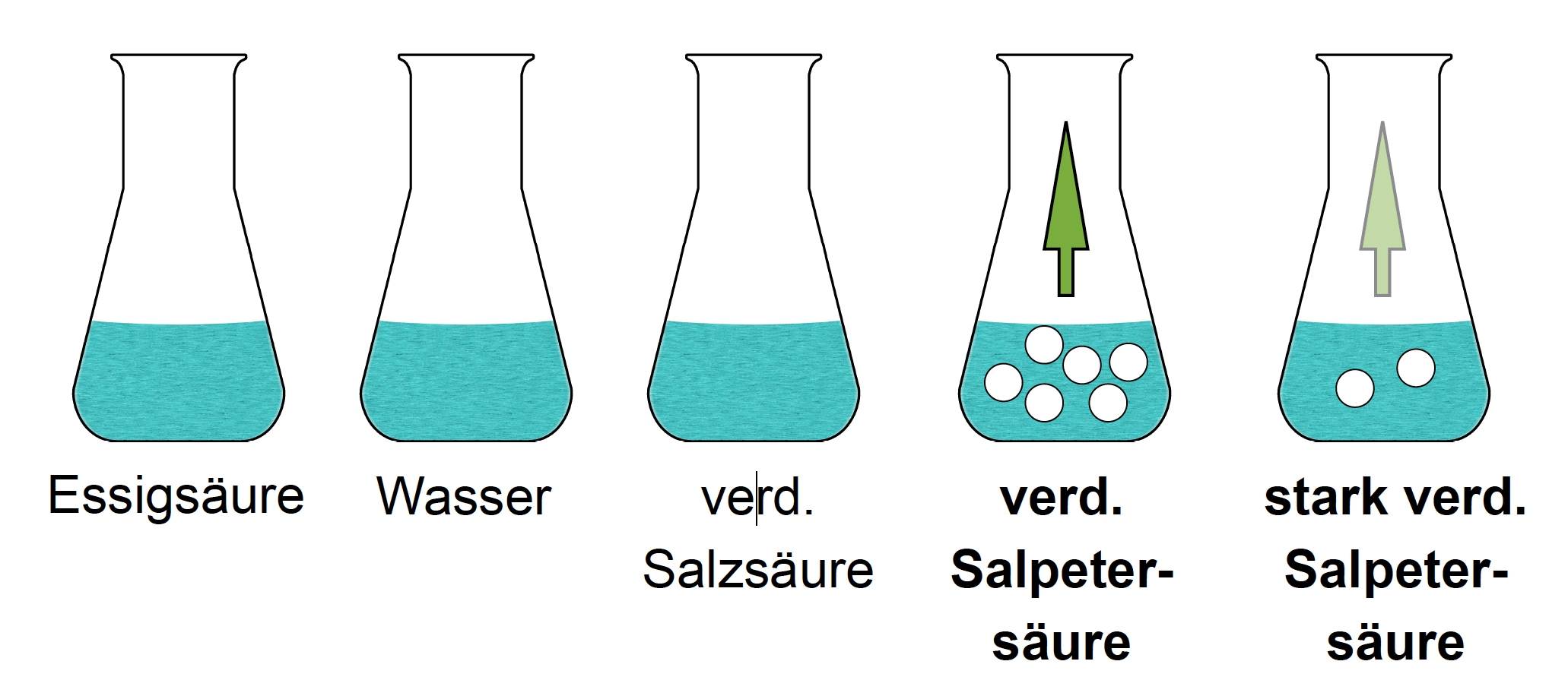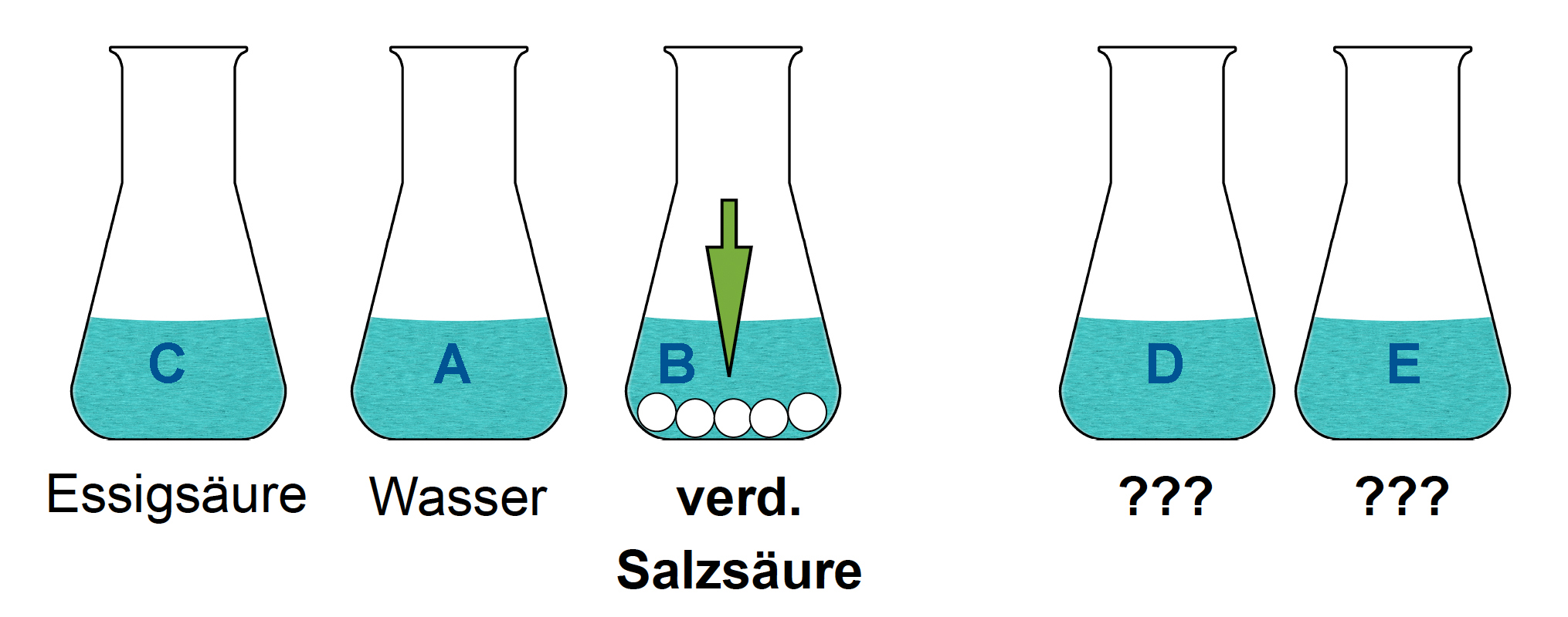 Die Schüler(innen) wissen natürlich nicht, in welchem Erlenmeyerkolben sich welche Flüssigkeit befindet. Außerdem haben Sie noch nie oder nur sehr wenig mit Säuren gearbeitet, daher sind noch ein paar Zusatzinformationen hilfreich.