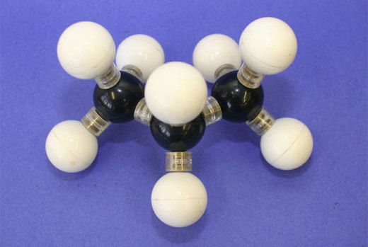 Das Propan-Molekül, gebaut mit einem Molekülbaukasten.