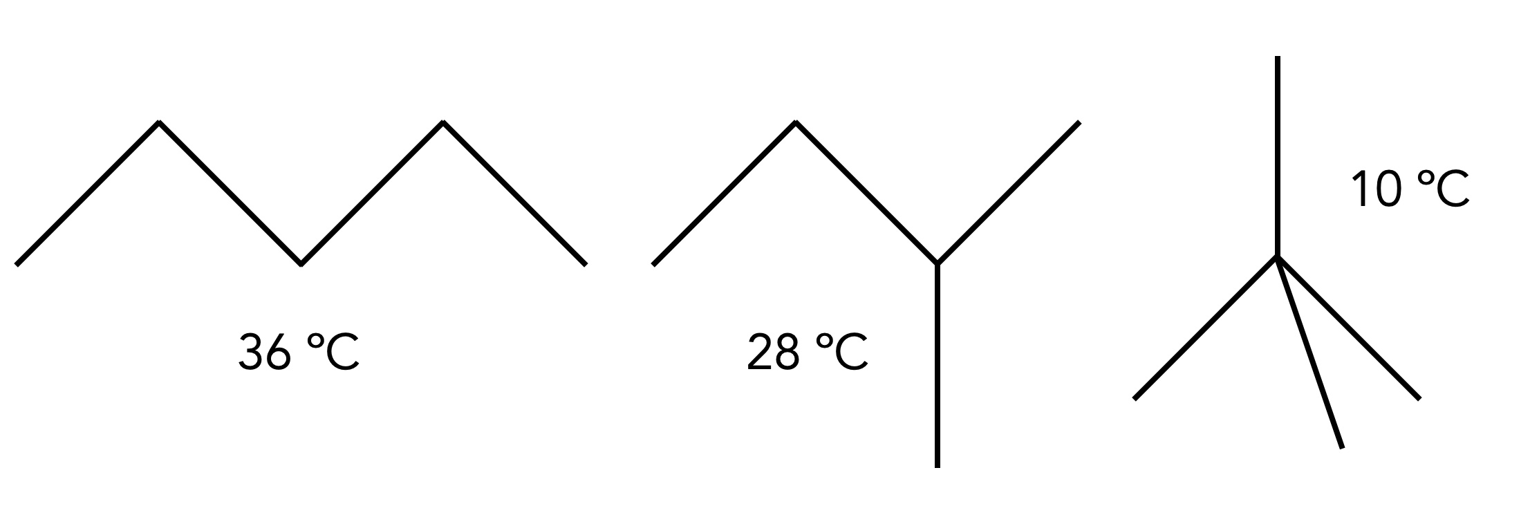 Aber die Stärke der intermolekularen Anziehungskräfte hängt nicht nur von der Kettenlänge des Alkans ab, wie das folgende Beispiel zeigt: