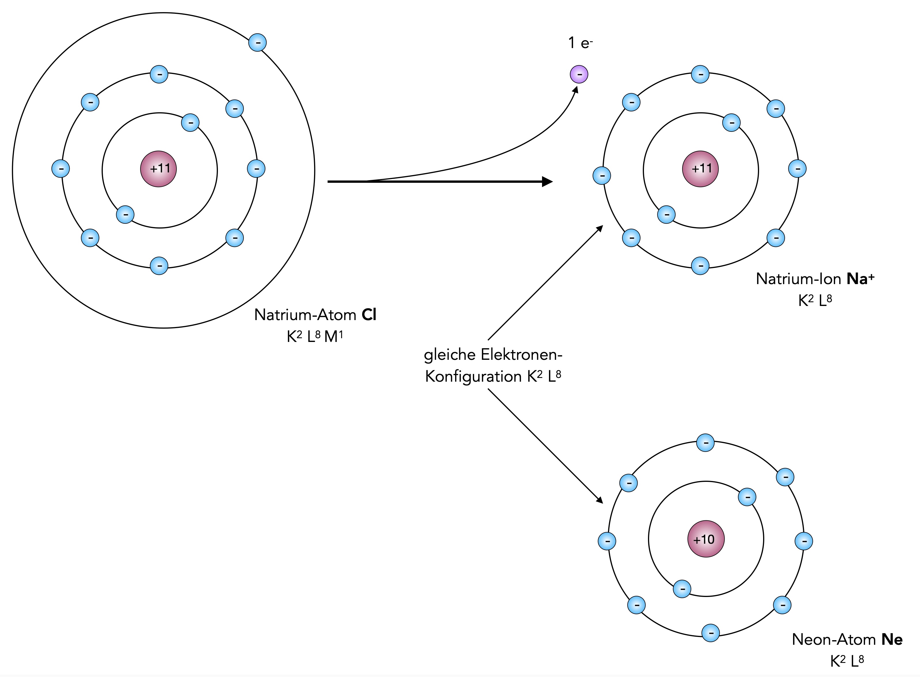 Natrium gelangt durch Abgabe eines Elektrons in den Edelgaszustand des Neons
