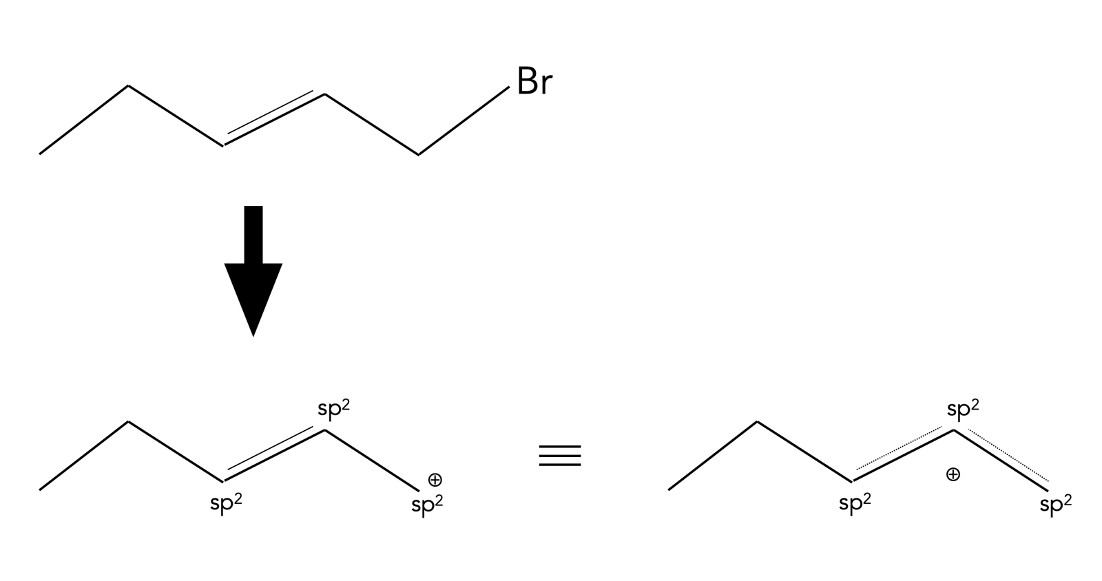 Das Brom-Atom befindet sich in der sogenannten Allylstellung, es befindet sich also in direkter Nachbarschaft zu einer C=C-Doppelbindung.