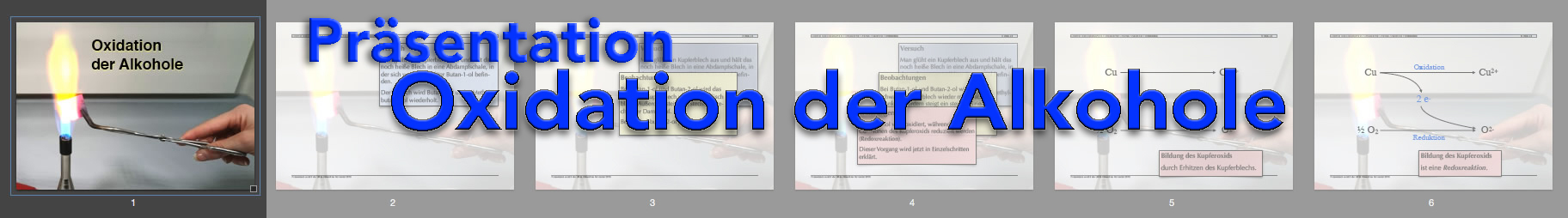 Hier wird ein zweiter klassischer Versuch der Alkohol-Oxidation mit dem Oxidationsmittel Kupferoxid gezeigt.