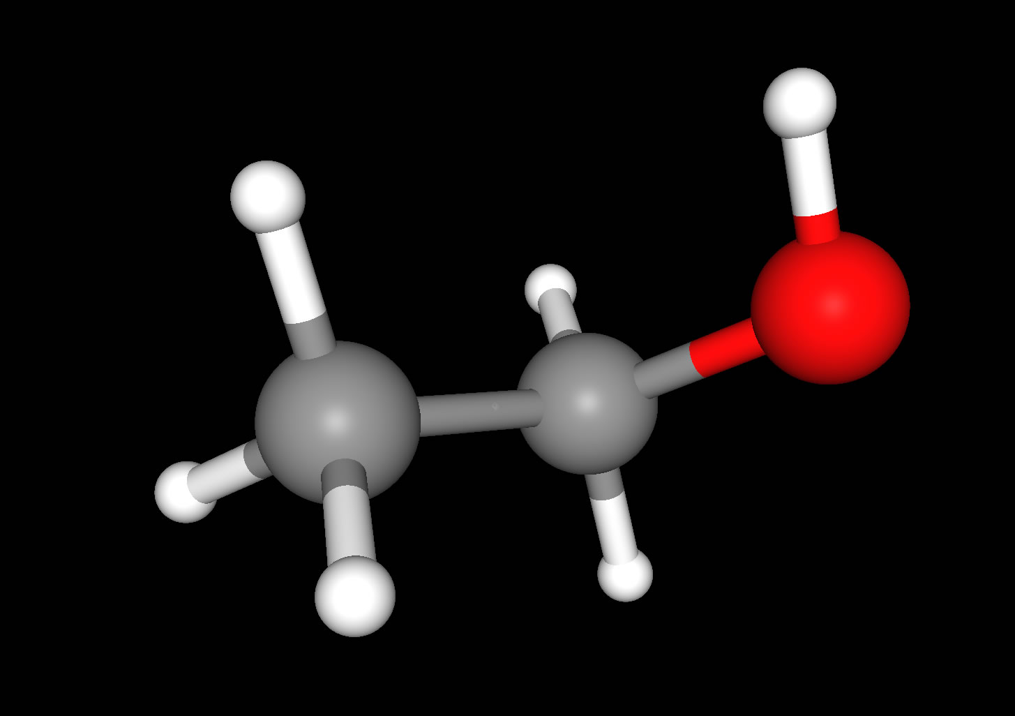 Der wohl bekannteste Alkohol überhaupt ist Ethanol, auch als Ethylalkohol oder schlicht "Alkohol" bekannt. Betrachten wir uns zunächst mal ein Molekülmodell des Ethanols: