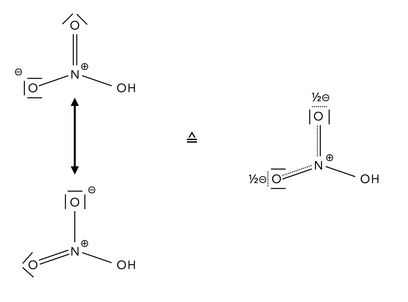 Das Salpetersäure-Molekül ist mesomerie-stabilisiert
