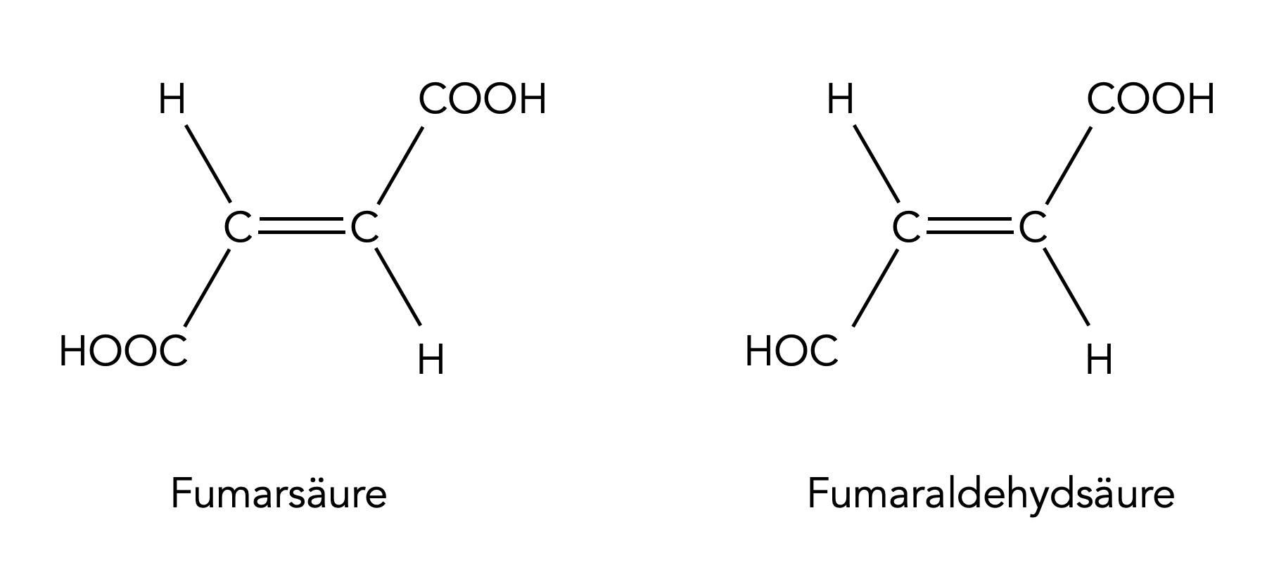 Etwas komplexer aufgebaut ist die Fumaraldehydsäure, die durch Reduktion von Fumarsäure gewonnen werden kann.