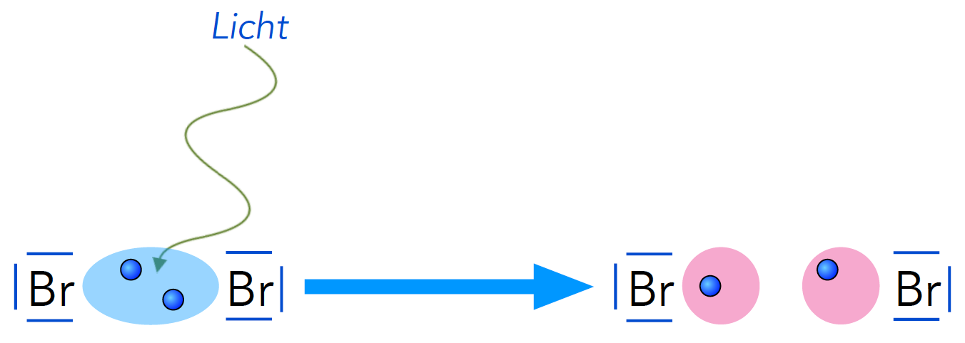Photolytische Spaltung eines Brom-Moleküls in zwei Brom-Radikale