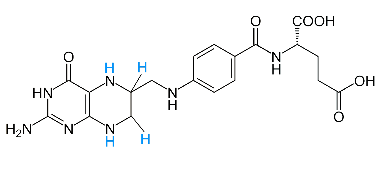 Tetrahydrofolsäure hat vier H-Atome mehr als die Folsäure