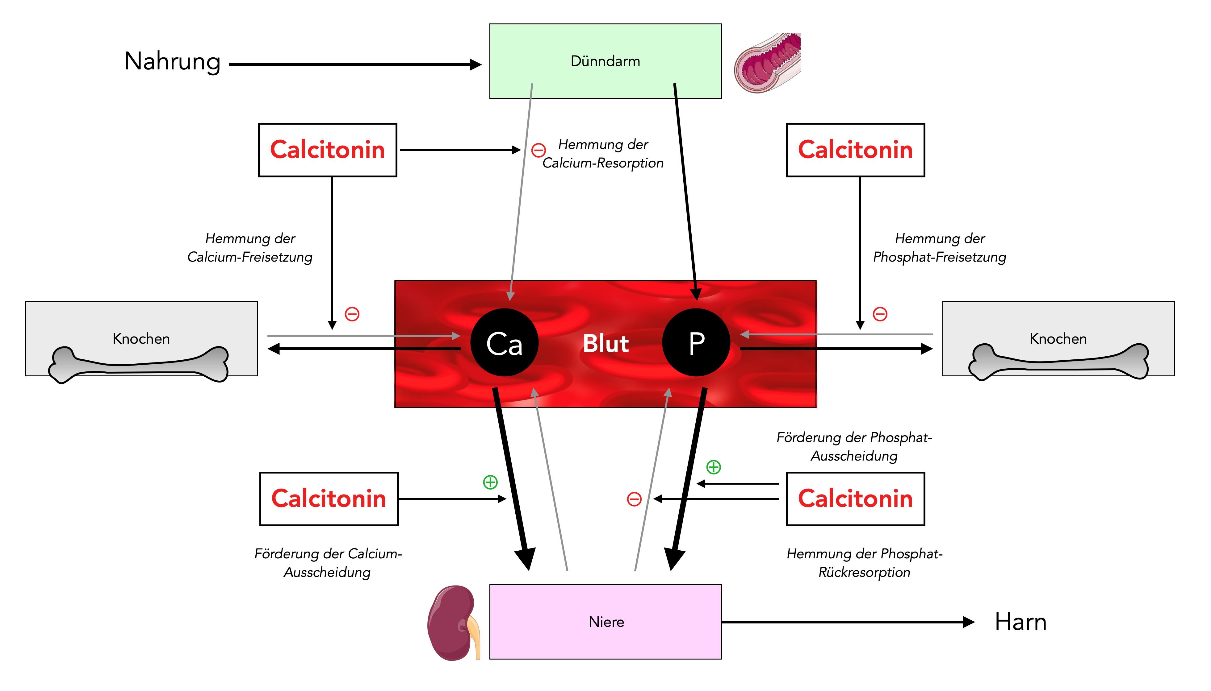 Calcitonin-Wirkung auf den Calcium/Phosphat-Spiegel des Blutes