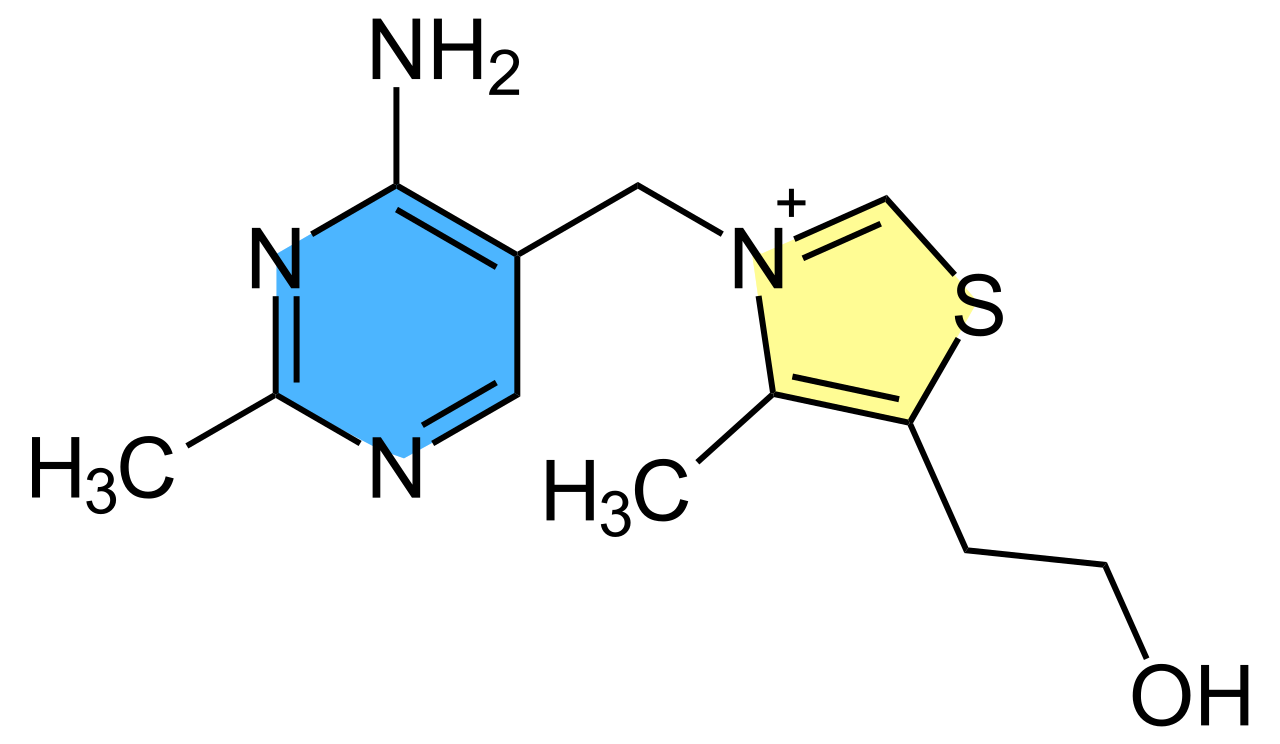 Strukturformel des Thiamin-Kations mit einem Schwefel-Atom