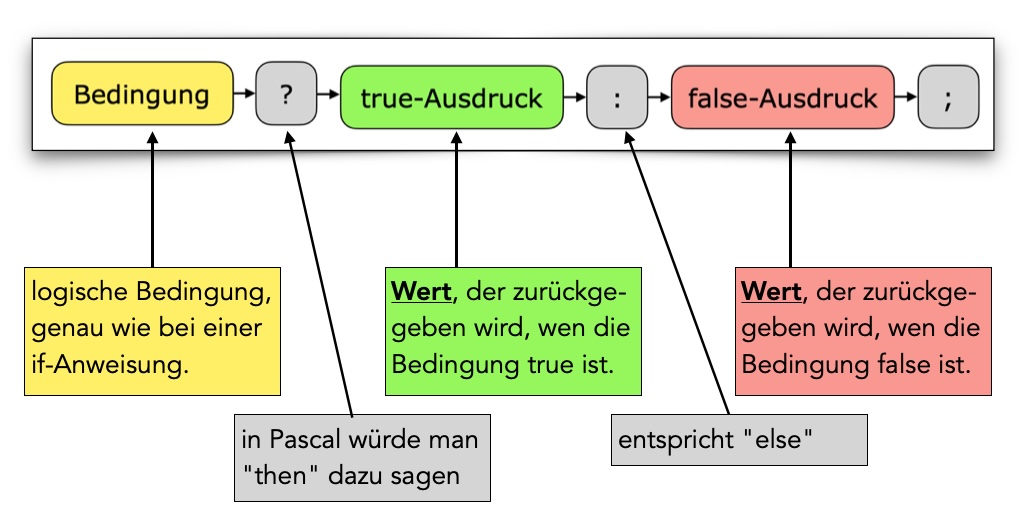 Viel Erfolg beim Üben. Ein Aufgabentyp für die Klausur könnte ähnliche Beispiele präsentieren, oder es könnte sein, dass Sie eine vorgegebene geschachtelte if-else-Anweisung in eine Anweisung mit ternären Operatoren umwandeln müssen oder umgekehrt.
