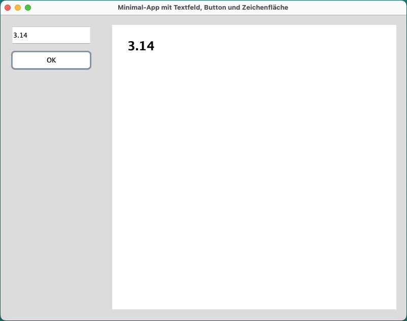 Wir sehen hier eine einfache Java-Anwendung mit einem Textfeld, einem Button und einem Zeichen-Panel:
