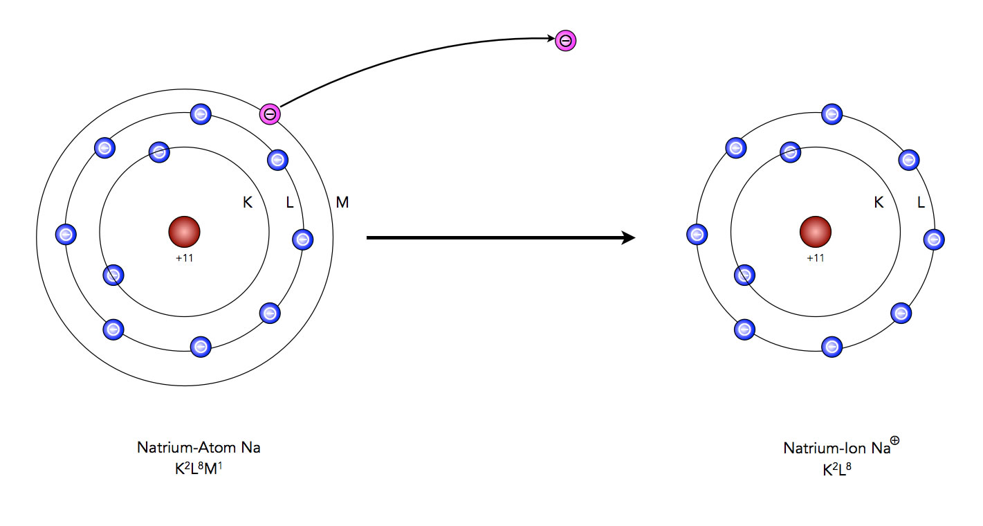 Natrium gelangt durch Abgabe eines Elektrons in den Edelgaszustand des Neons