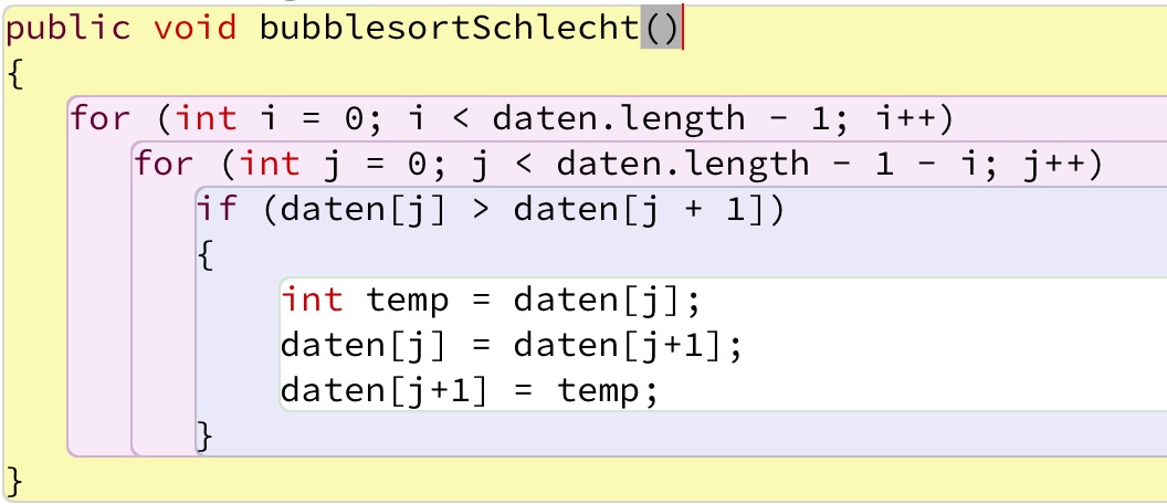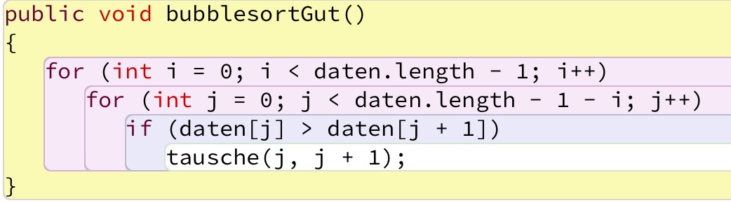 Die Sache mit den Abstraktionsebenen ist vielleicht nicht so ganz klar. Schauen wir uns noch einmal den Quelltext des "guten" Bubblesort-Algorithmus an.