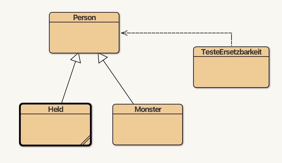 Eine Testklasse soll die Ersetzbarkeit der Oberklasse überprüfen