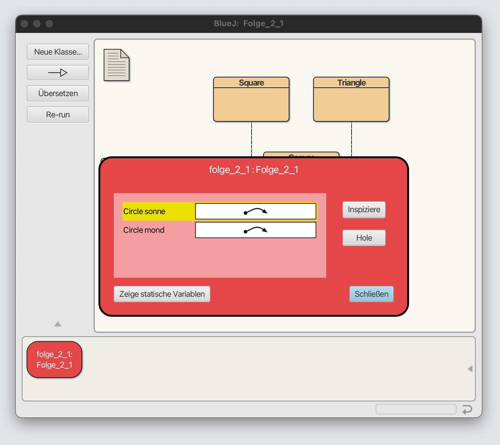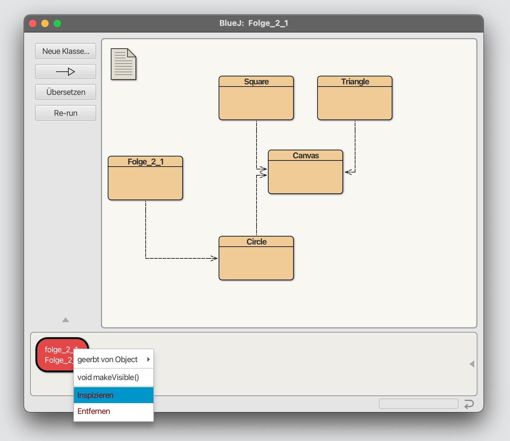 ⇒ Klicken Sie mit der rechten Maustaste auf das erzeugte Objekt der Klasse Folge_2_1 und wählen Sie den Befehl Inspizieren aus.