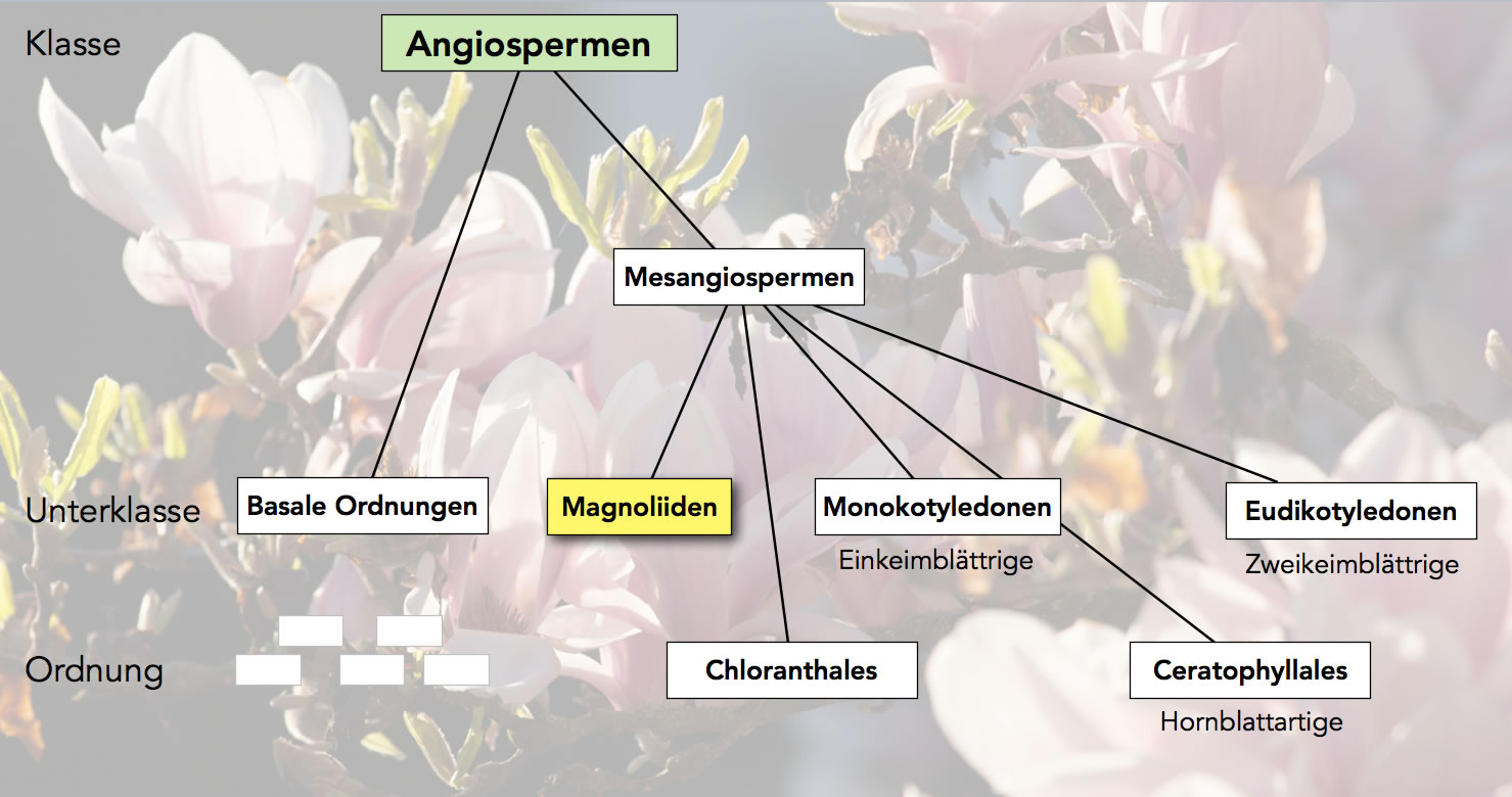 Die Gruppe der Magnoliiden umfasst laut Wikipedia die folgenden vier Ordnungen: