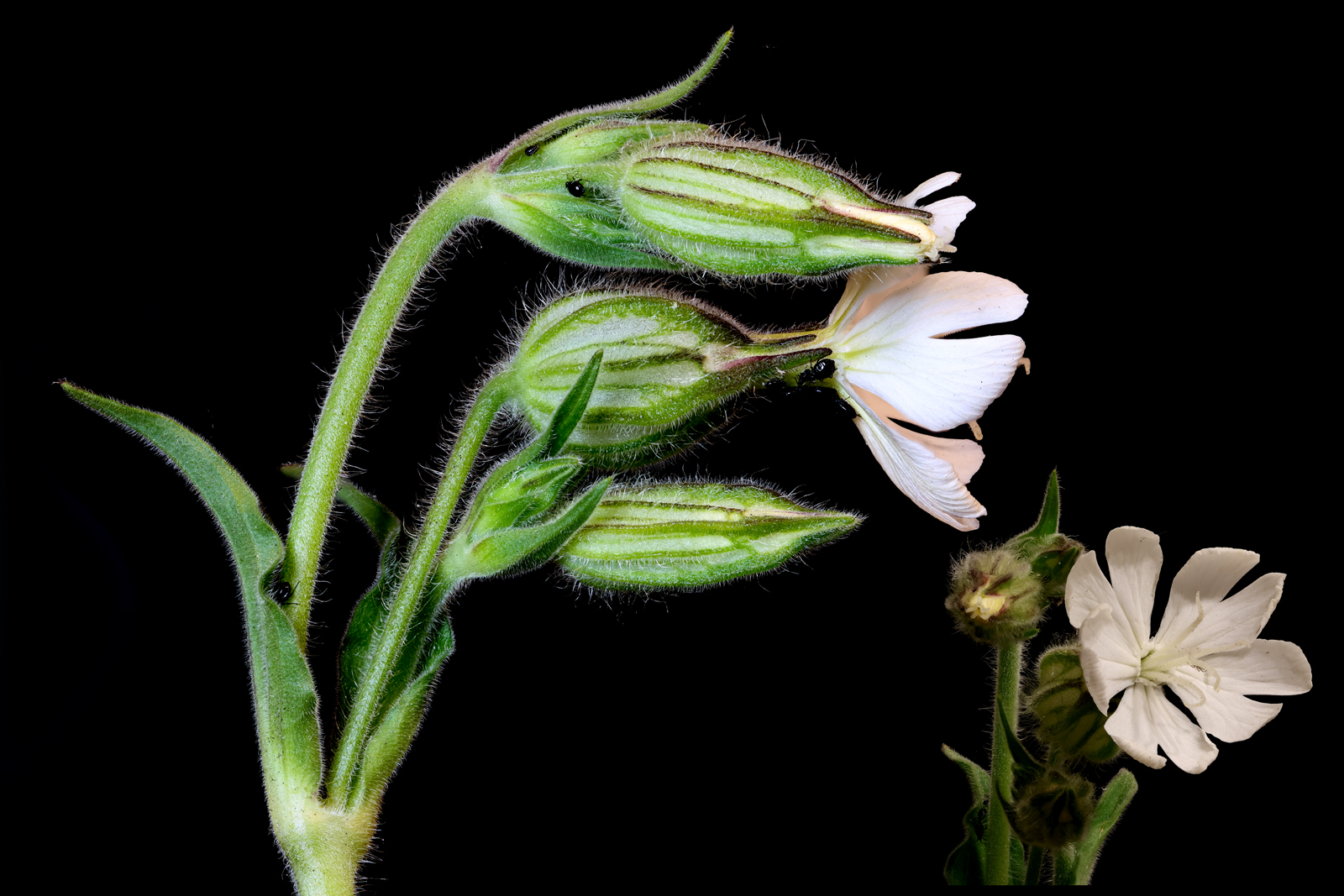- Silene alba oder Silene latifolia, die Breitblättrige bzw. Weiße Lichtnelke aus der Familie der Caryophyllaceae (Nelkengewächse)