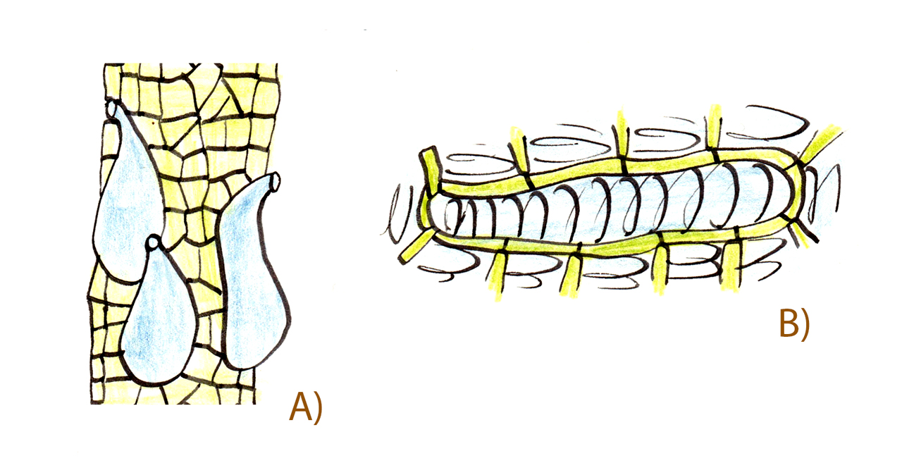 Diese abgestorbenen Zellen sind durch spiralartige Verdickungen der Zellwand verstärkt. In diesen Zellen können Torfmoose sehr viel Wasser speichern und so längere trockene Perioden überstehen.