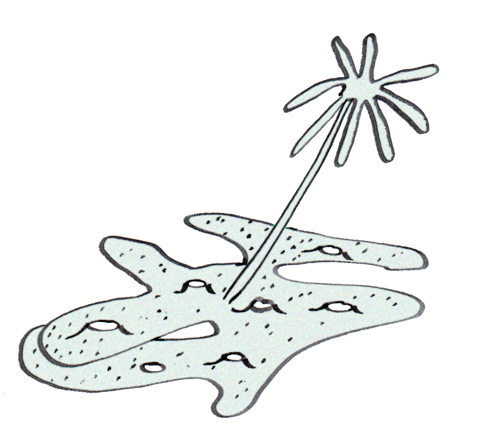 Stiel mit einem Receptaculum, Querschnitt durch den Stiel (rechts).