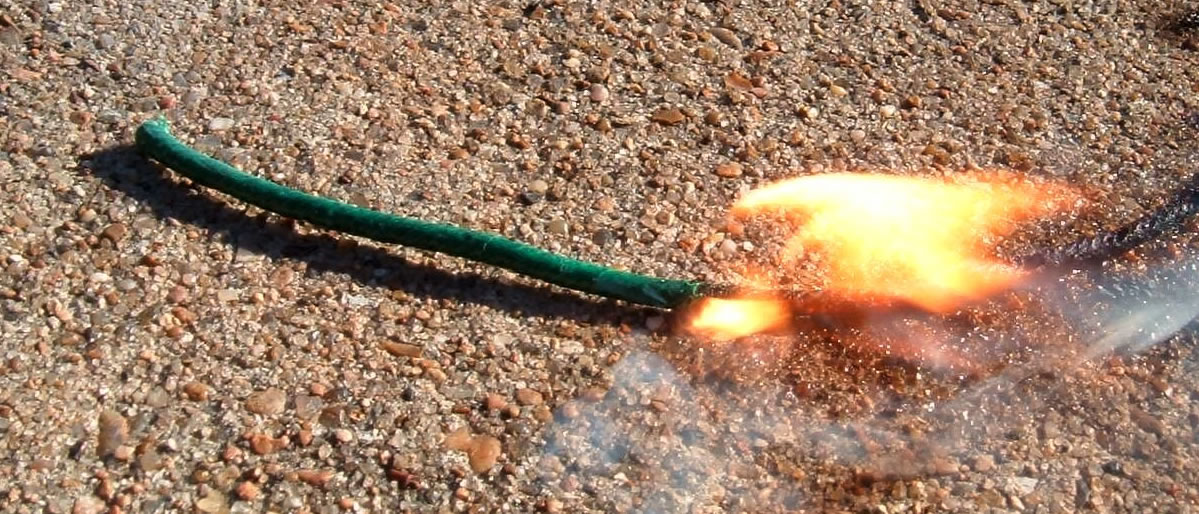 "Die Spitze der brennenden Zündschnur erhitzt den unmittelbar benachbarten Abschnitt, bis sich dieser ebenfalls entzündet... Beachten Sie dabei, dass die Zündschnur, die an einem Ende entzündet wurde, nur in einer Richtung brennt. Die Flamme kann nicht umkehren, da das brennbare Material direkt dahinter verbraucht ist." [2, S. 106].