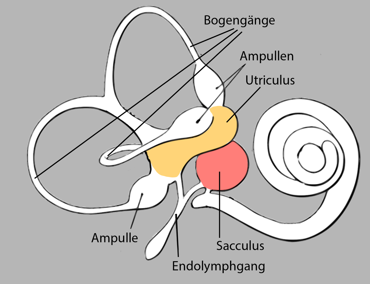 Der Gleichgewichtssinn besteht aus zwei Komponenten, die man Utriculus und Sacculus nennt. Beide Komponenten zusammen werden als Maculaorgane bezeichnet.