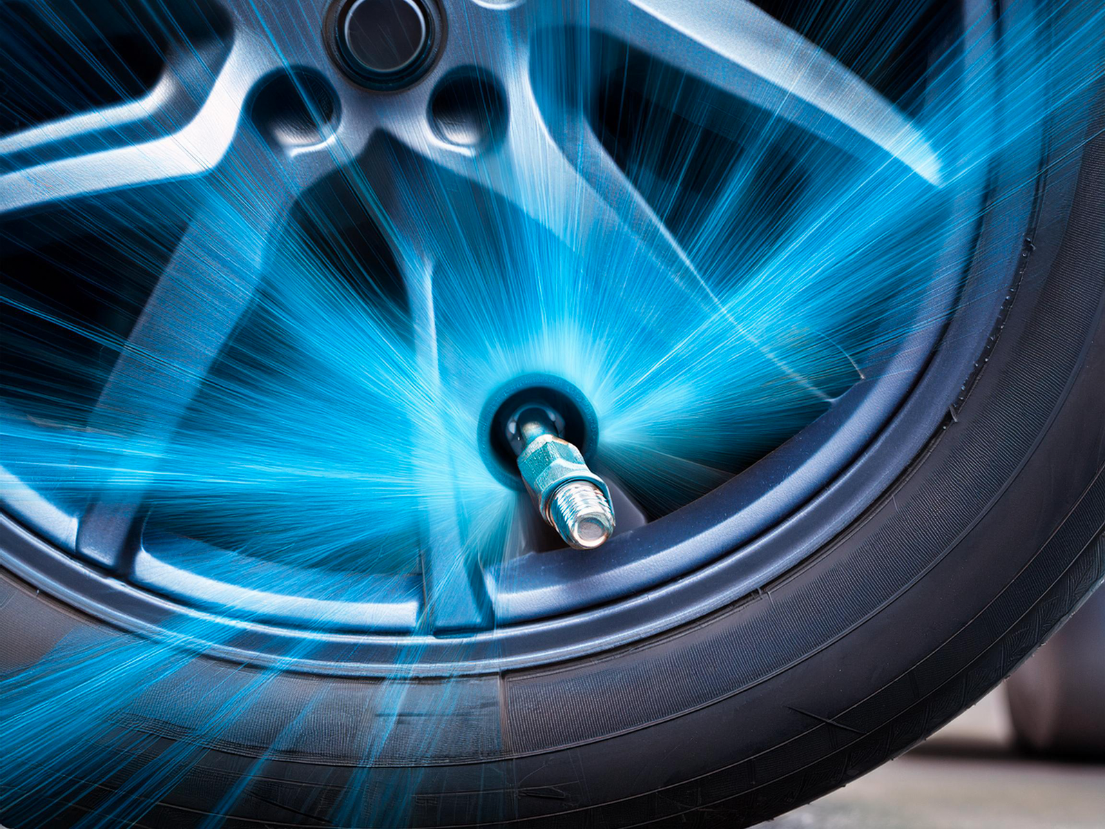 Hier sehen wir ein weiteres Beispiel für eine Entropie-Zunahme. Das Ventil eines Autoreifens hat sich gelockert, und die Luft entweicht schlagartig. Im Innern des Reifens herrscht ein hoher Luftdruck, außerhalb des Reifens ein normaler Druck. Durch diesen Druck-Unterschied angetrieben, strömt nun die Luft aus dem Reifen heraus, bis im Innern des Reifens der gleiche Druck herrscht wie außen: Druck-Ausgleich.