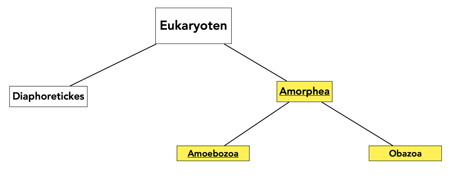 Die Amorphea sind die Schwestergruppe der Diaphoretickes, zu denen u.a. die Pflanzen gehören. Die Amorphea umfassen als "Supergruppe" oder "Unterdomäne" die beiden Taxa Amoebozoa und Opisthokonta.