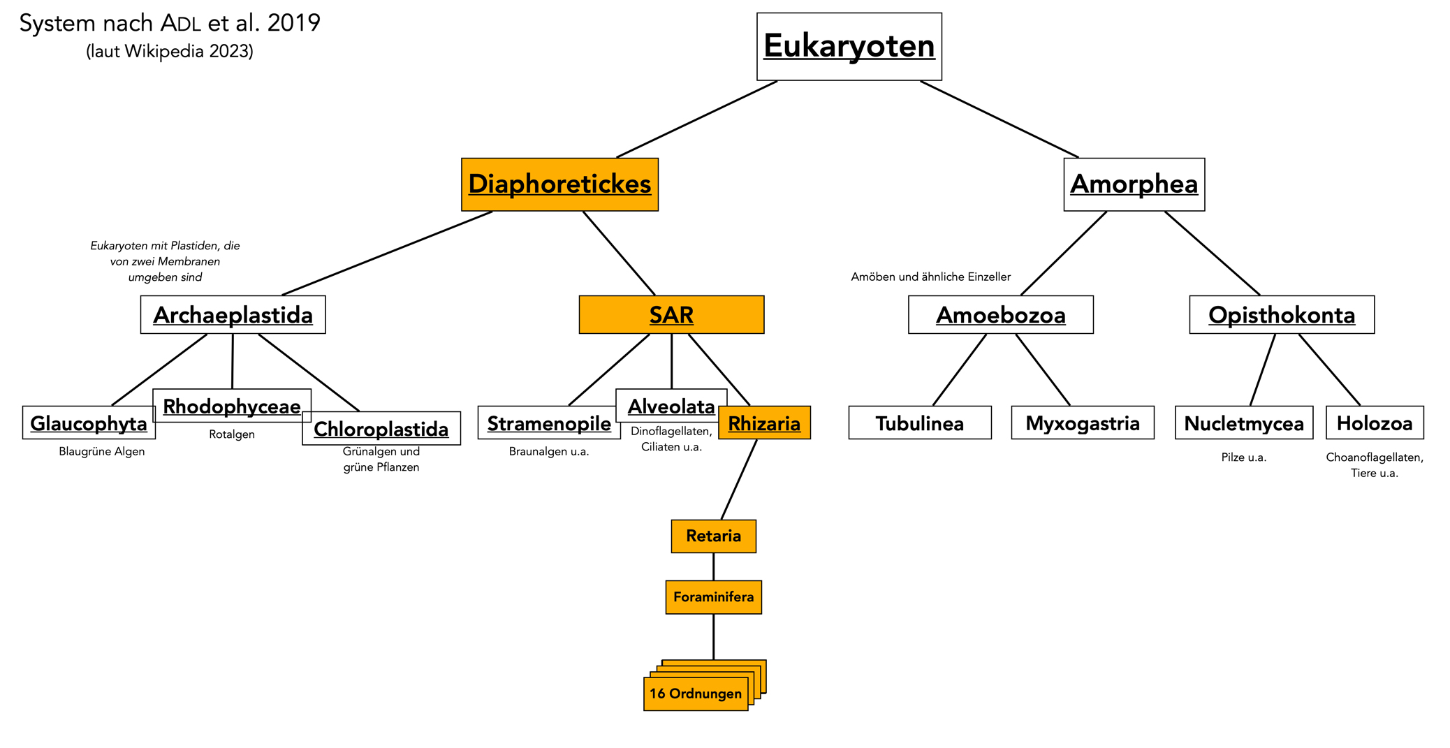 Die Foraminiferen werden auch als Kammerlinge bezeichnet. Es handelt sich um eine Gruppe formenreicher und überwiegend im Meer lebender Rhizopoden.