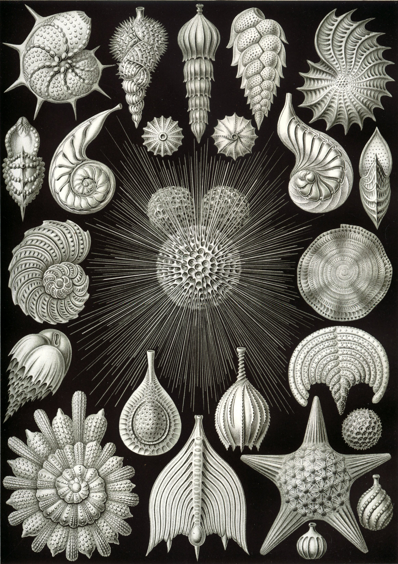 Diese schöne Bildtafel aus dem Buch "Kunstformen der Natur" von Ernst Haeckel, das in den Jahrn 1899 bis 1904 entstand zeigt ein paar Vertreter der Foraminifera oder "Kammerlinge", wie Haeckel diese Protozoengruppe nannte.