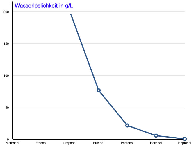 Graphische Darstellung der Wasserlöslichkeit von Alkanolen