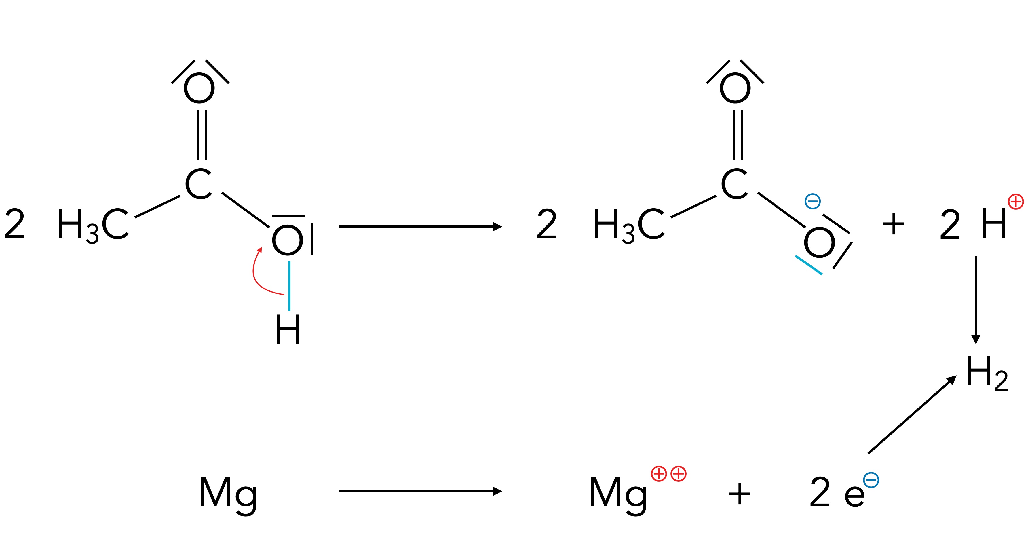 2 CH3-COOH + Mg → (CH3-COO)2Mg + H2