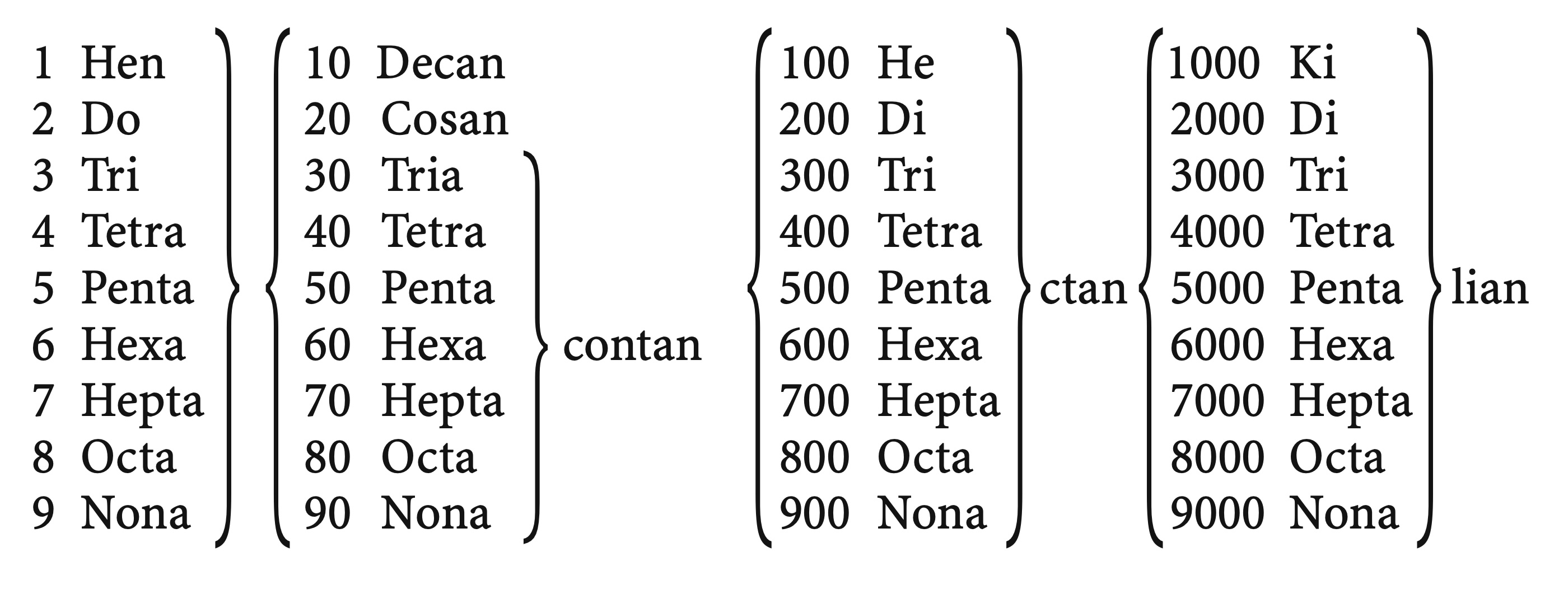 Hier haben wir es mit zwei Ausnahmen zu tun, das Alkan mit 20 C-Atomen wird als Eicosan bezeichnet, das Alkan mit 21 C-Atomen nicht als Hencosan, sondern als Heneicosan.